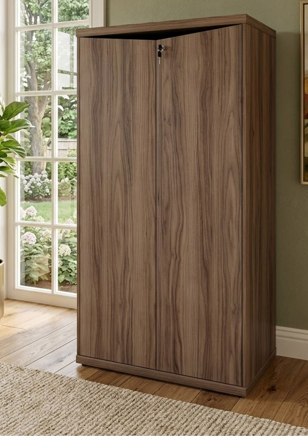 Armário Office de Luxo – 2 Portas com Chave e Tamburato 37mm – Nogal/Preto