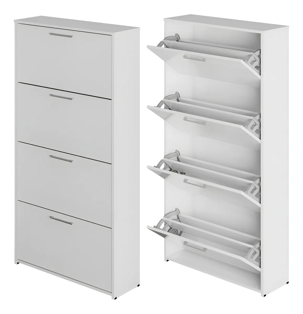 Sapateira Vertical Premium – 4 Portas Basculantes – Branco Clean